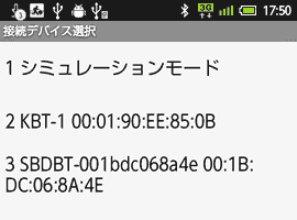 一番上の「シミュレーションモード」はBluetooth装置に接続しないでシミュレーションモードで起動する場合に選択しておいてください。