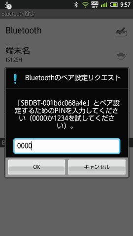 Bluetoothモジュールの電源を入れておくPINコードを入力を求められますので0000を入力します。