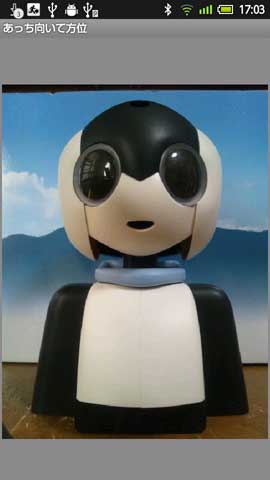 携帯の方向とロビ(画面)の向いている方向は一致しているため命令した時の携帯の方向によりロビの向く方向を計算します。
