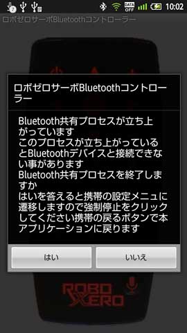 Bluetooth共有サービスが起動されている時に本アプリケーションを起動すると左のダイアログが表示されます。
