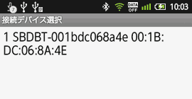 ペアリングされているBluetooth装置一覧が表示されますので接続するBluetooth装置を選択してください。