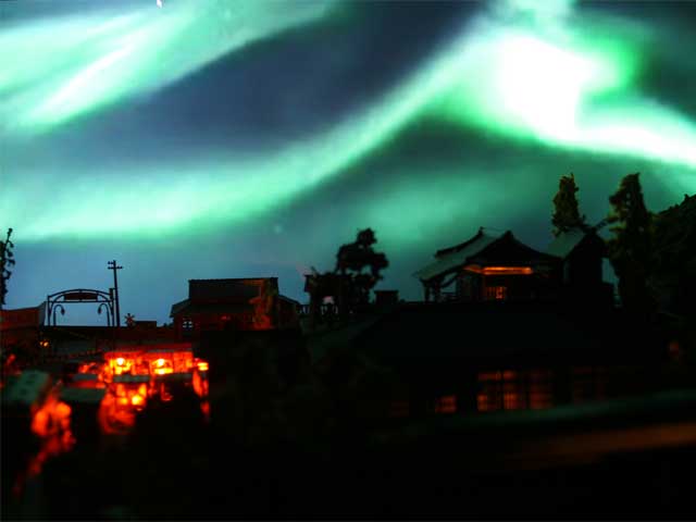 このレイアウトの季節は夏ですし、まして日本なのでオーロラは見えるはずはないのですがあくまで空想の世界という事で。